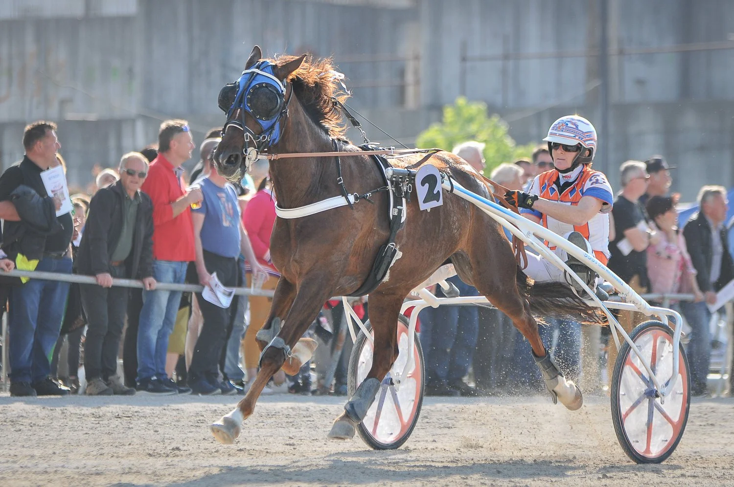 zgoraj: Kobila Jerca in njena lastnica, trenerka in voznica Darja Trontelj Dolinšek. Članici našega kluba sta osvojili cel kup največjih lovorik, med drugim tako državno prvenstvo za 3-letne kasače kot tudi veliki kasaški derbi leto za tem.